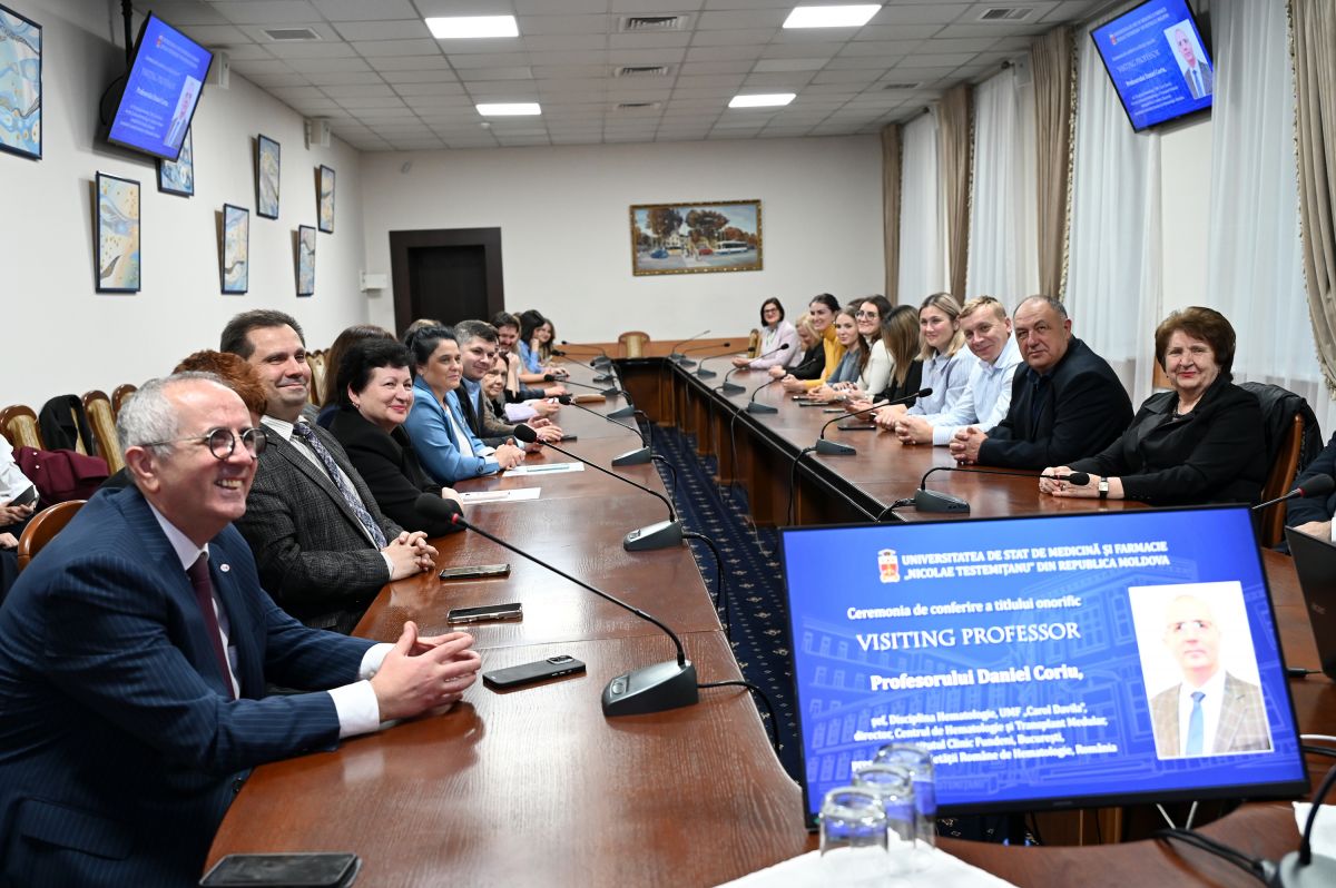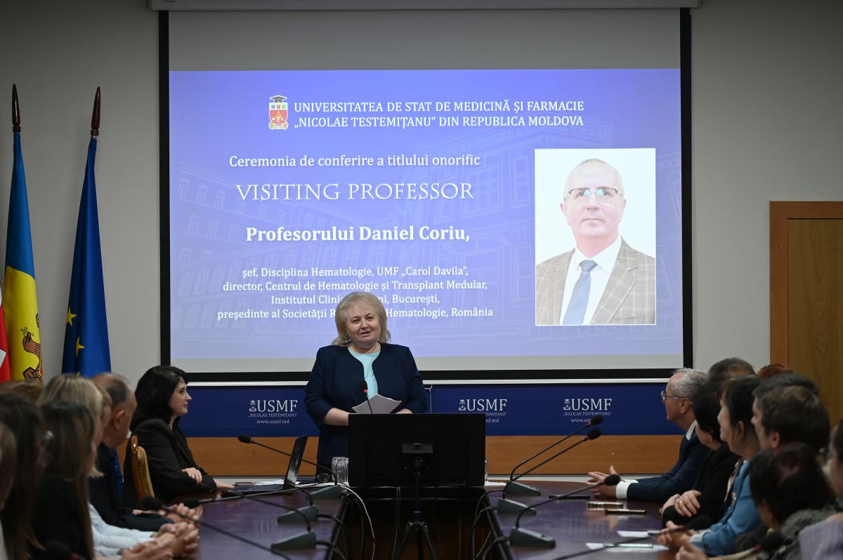 Ceremonia de conferire a titlului onorific Visiting Professor profesorului Daniel Coriu a avut loc la 31 octombrie 2025, în prezența reprezentanților administrației USMF „Nicolae Testemițanu”, cadrelor didactice, studenților și medicilor rezidenți de la Disciplina de hematologie.